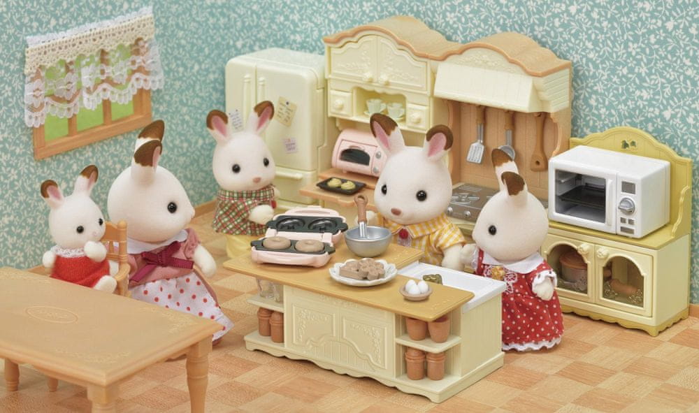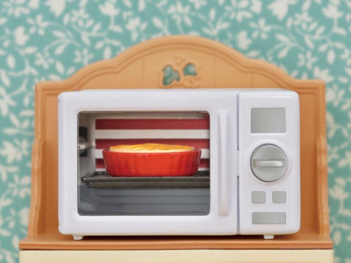 Czym więcej wiesz o krainie Sylvanian Families, tym więcej zabawnych przygód czeka na Ciebie! Czy kiedykolwiek byliście za dziesięcioma zielonymi wzgórzami i przeszliście przez las wielkich drzew? Kiedy dojdziecie na skraj lasu, ukaże się wam najbardziej malownicza kraina, jaką można znaleźć na świecie. Znajduje się tam wioska Sylvanian Families. Przyjdź do nas i poznaj mieszkańców i niezwykłe historie Sylvanian Families. Zestaw szafka z kuchenką mikrofalową to idealne wyposażenie kuchni w domku Sylvanian Families. W kuchence mikrofalowej można upiec pyszne ciasto lub podgrzać obiad. Po obróceniu pokrętła kuchenka mikrofalowa staje się czerwona. Kuchenka mikrofalowa stoi na szafce kuchennej z dwoma drzwiczkami, w której zmieszczą się inne akcesoria kuchenne. Zestaw szafka z kuchenką mikrofalową Sylvanian Families można połączyć z innymi zestawami, domkami, meblami i akcesoriami Sylvanian Families. Zabawki Sylvanian Families wyróżnia najwyższa jakość wykonania oraz miłość do szczegółów.